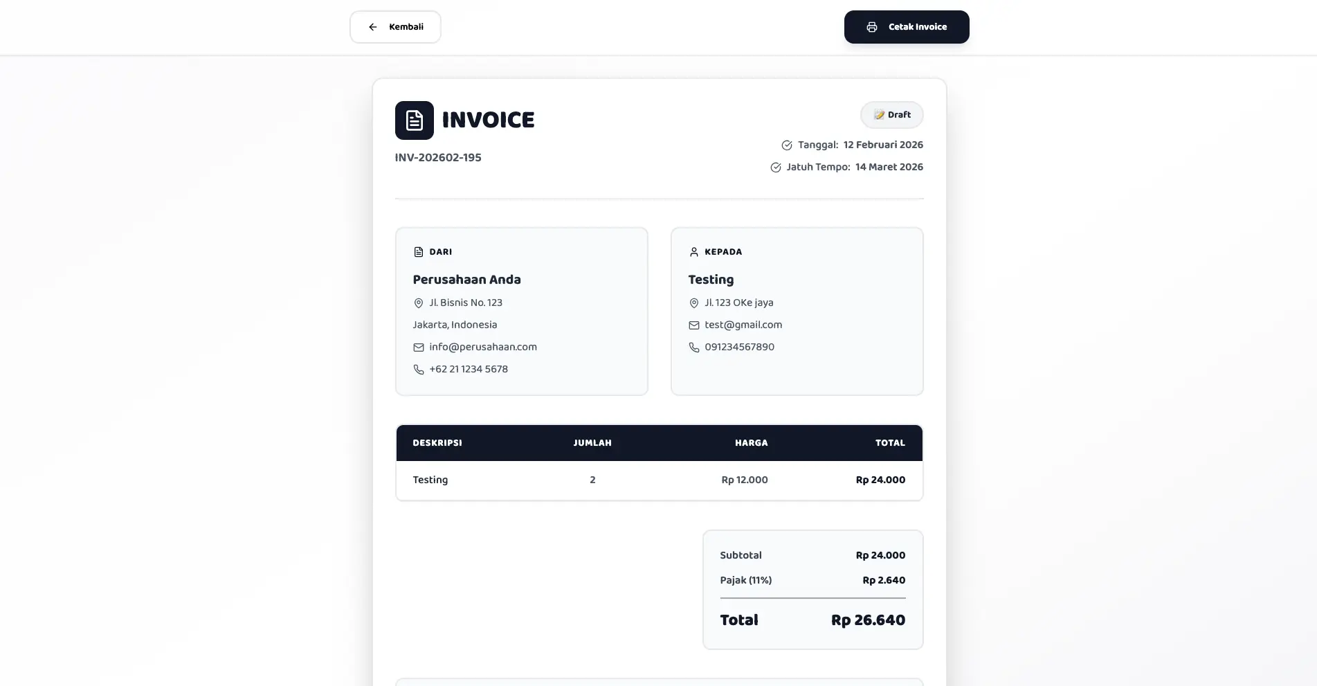 - Base code yang solid untuk pengembangan sistem invoice yang lebih kompleks.