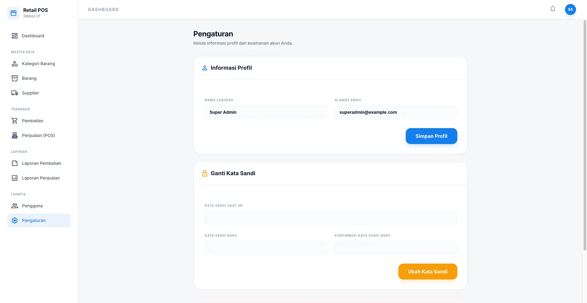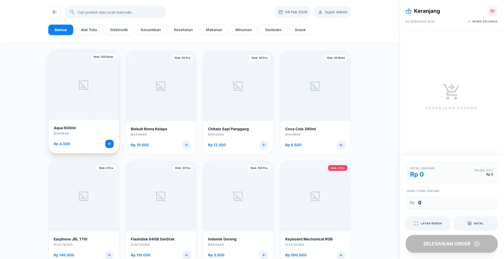 Sistem Kasir POS Modern ini adalah solusi digital lengkap untuk mengelola operasional retail atau toko Anda dengan lebih efisien. Dikembangkan dengan teknologi terbaru, sistem ini menawarkan kecepatan transaksi melalui antarmuka kasir yang intuitif serta akurasi data melalui laporan keuangan yang komprehensif. Dengan desain premium, aplikasi ini tidak hanya fungsional tetapi juga memberikan pengalaman pengguna yang luar biasa melalui pembagian hak akses yang rapi.