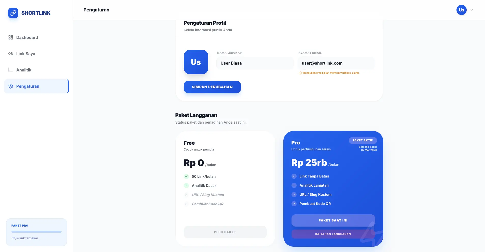 - Midtrans Integration: Sistem pembayaran otomatis untuk paket berlangganan Pro.